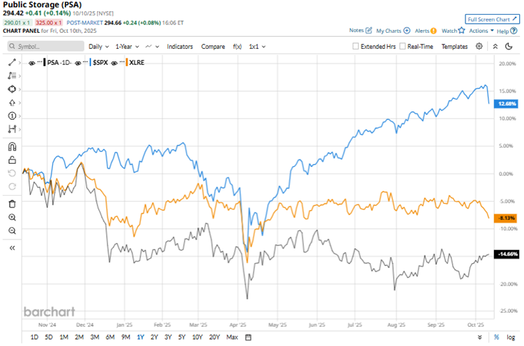 What to Expect From Public Storage’s Q3 2025 Earnings Report![]() Based in Glendale, California, Public Storage (PSA) is the leading self-storage real estate investment trust (REIT), running thousands of facilities across the U.S. and internationally. Its extensive real estate presence allows it to deliver secure storage to individuals, families, and businesses nationwide. Through strategic expansion, ongoing acquisitions, and cutting-edge customer service solutions, Public Storage maintains its industry dominance and continues to grow as an innovator in operational excellence. The company has a market capitalization of $51.66 billion. Public Storage is set to release its third-quarter results on Oct. 29, after the market closes. Ahead of the results, Wall Street analysts have a subdued view on the company’s bottom-line growth. For the third quarter, analysts expect Public Storage’s profit to grow marginally year-over-year (YOY) to $4.24 per diluted share. The company has a mixed record of surpassing Wall Street’s bottom-line estimates, topping them in two of the trailing four quarters and missing them on two other occasions. For the current fiscal year, profit is expected to grow marginally annually to $16.82 per diluted share. ![]() Public Storage’s stock has been underperforming the broader market over the past year. The stock has dropped by 13.9% over the past 52 weeks and 1.7% year-to-date (YTD). On the other hand, the broader S&P 500 Index ($SPX) has gained 13.4% and 11.4% over the same periods, respectively. Over the past 52 weeks, the real estate sector, as shown by the Real Estate Select Sector SPDR Fund (XLRE), has had a less pronounced decline of 5.4% compared to Public Storage’s stock, while the ETF has gained marginally YTD. ![]() On July 30, Public Storage reported second-quarter results for fiscal 2025. The company’s total revenues increased 2.4% YOY to $1.20 billion, exceeding the $1.19 billion that Wall Street analysts had expected. Its core FFO increased by 1.2% from the prior year’s period to $4.28 per share, which was higher than the $4.23 per share that was expected. However, rising costs have put some pressure on margins. Its net income per share dropped from $2.66 in Q2 2024 to $1.76 in Q2 2025. Public Storage also provided weak guidance. For the current year, its revenue is expected to grow in the range of -1.3% to 0.8%, while net operating income is projected to grow in the range of -2.6% to 0.3%. Based on this, Public Storage’s stock declined 5.8% intraday on July 31. Wall Street analysts have been soundly bullish about Public Storage’s prospects. Among the 22 analysts covering the stock, it has a consensus rating of “Moderate Buy” overall. The configuration of the ratings has remained stable, with 13 “Strong Buy” ratings and nine “Hold” ratings. The mean price target of $323.11 indicates 9.7% upside from current levels, while the Street-high price target of $350 implies an 18.9% upside. On the date of publication, Anushka Mukherjee did not have (either directly or indirectly) positions in any of the securities mentioned in this article. All information and data in this article is solely for informational purposes. For more information please view the Barchart Disclosure Policy here. |